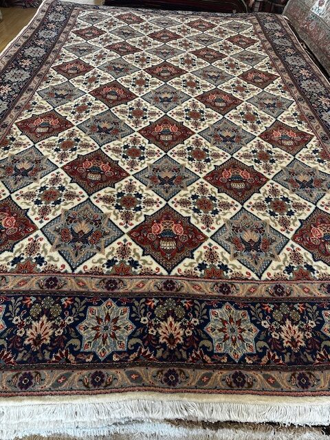 Handmade Persian Fine Tehran Wool and Silk rug ,this rug is very Unique in Australia, Has a beautiful patterns and colours in very fine weave ,top quality .its been using kourk wool and Iranian Silk ,its one of the rear rug ,mostly the high quality .