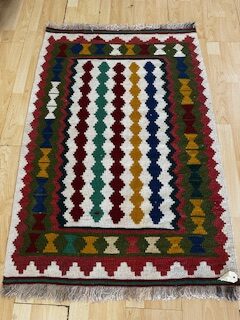 Hand woven flat rug wool kilim in organic colours and nice patterns reversable rug.