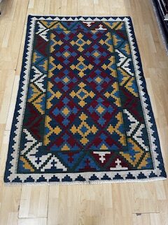 Persian Handwoven Wool rug from Shiraz Iran In organic dyes and nice patterns reversable . Size:172x 119 cm