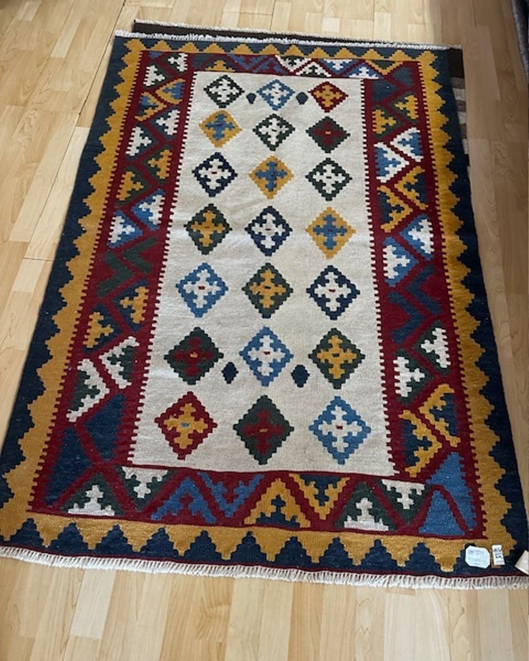 Handwoven kilim from Shiraz wool on wool in organic colours .