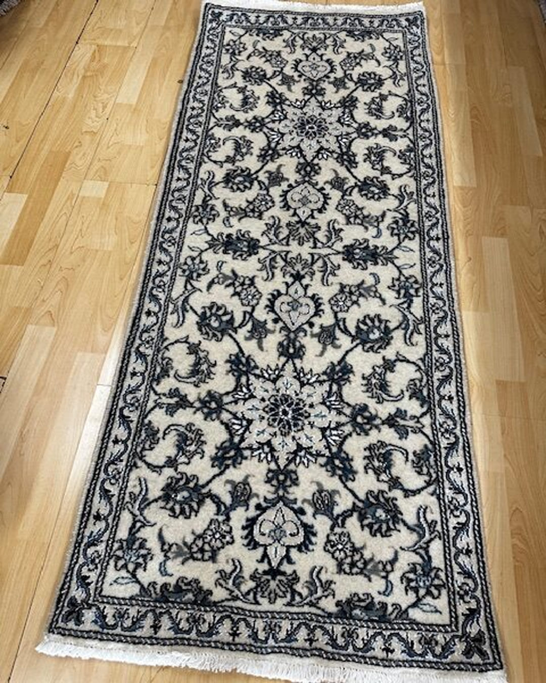 This superb handmade Persian runner made in wool and silk from Nain ,with absolutely good weave and materials in lovely colours and patterns made for heavy duty area .