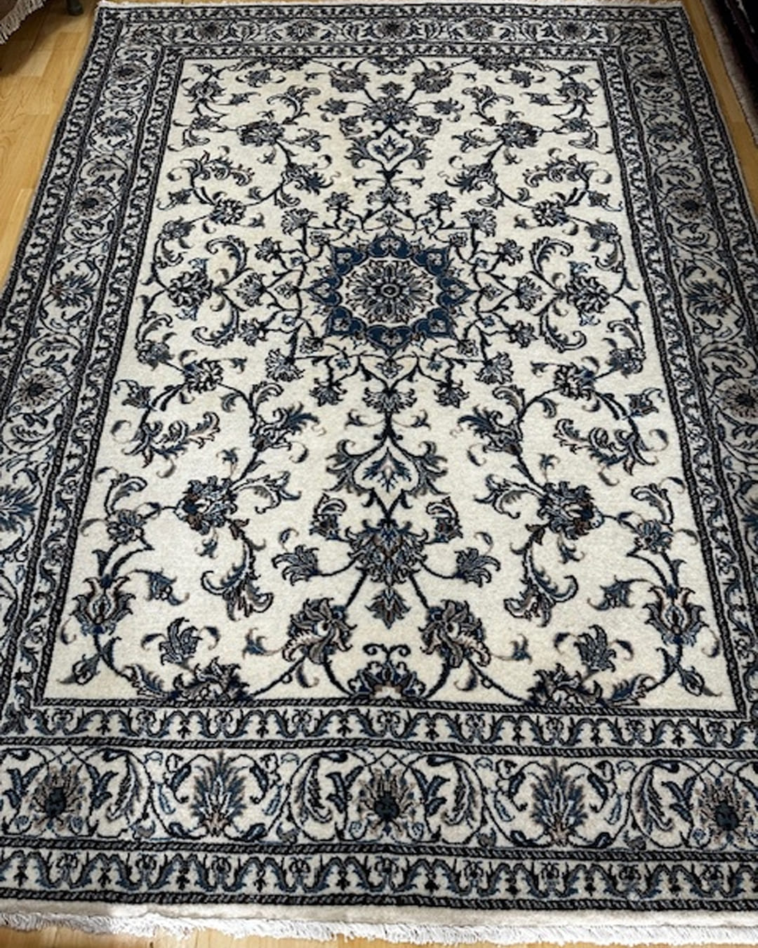 Handmade Persian Silk and wool rug from Nain . This rug is very hardwearing and easy to use in any room.