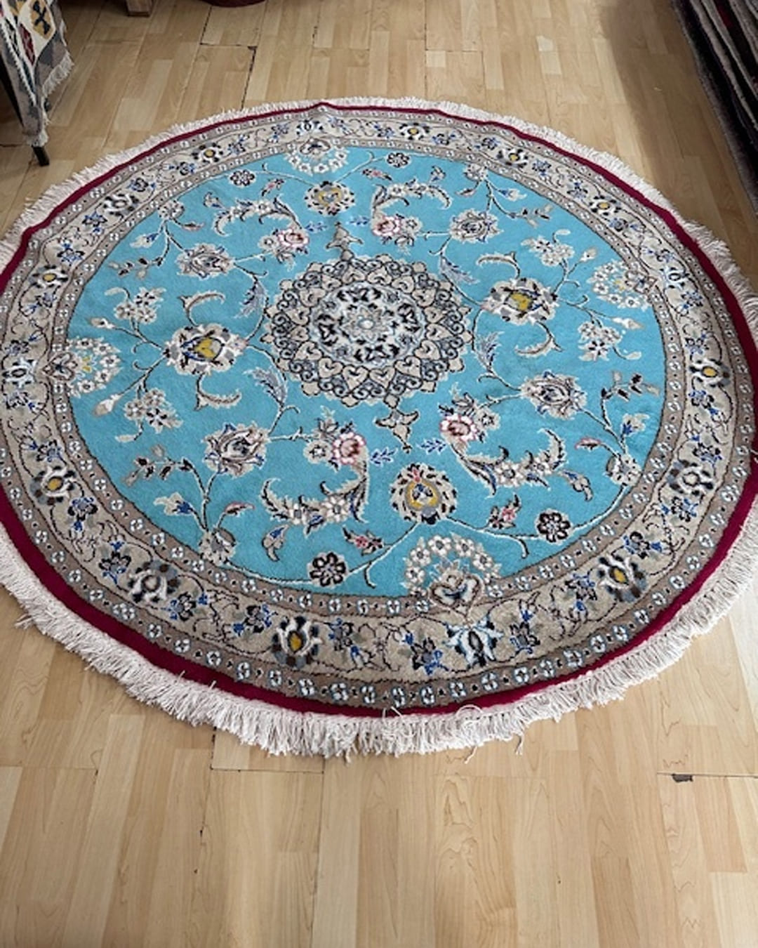 Handmade Persian Nain round rug in Silk and wool.