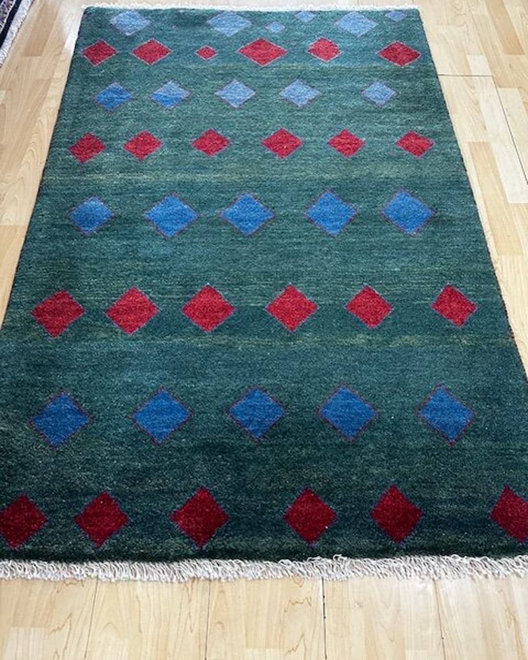 This Superb Handmade tribal Gabbeh Rug in modern Patterns and lovely Green would be a rug you need .