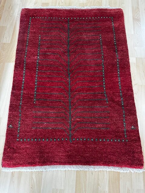 Fine hand knotted tribal wool on cotton Rug from Gabbeh in Shiraz with Tree of life patterns . Size:118 x 120 cm
